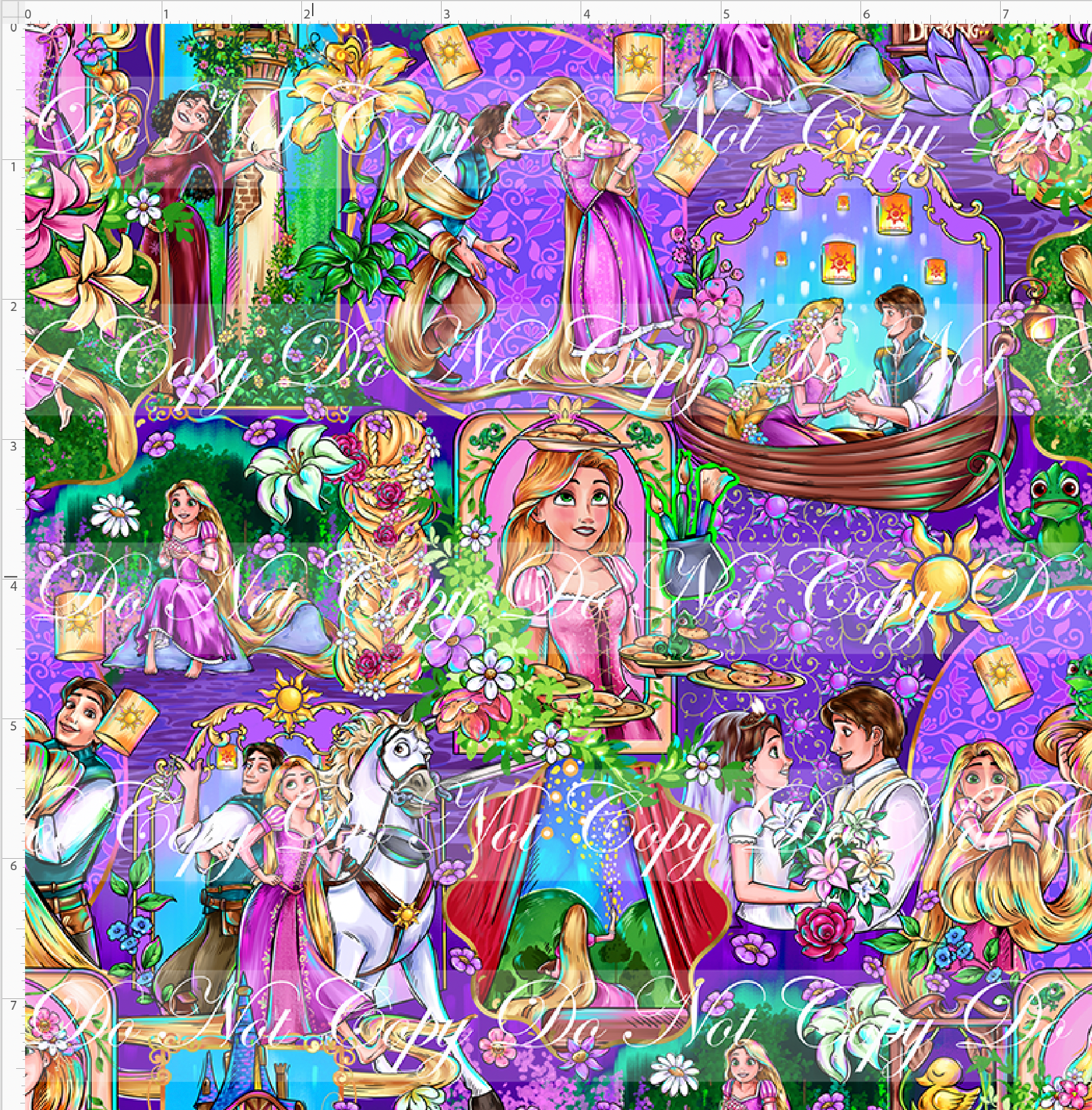 Kid/child panels measure 19" x 34". The image area typically ranges from 7" x 7" to 8" x 8", though some smaller design elements may extend beyond these dimensions. Please refer to the ruler shown on the design to ensure it fits your project needs.