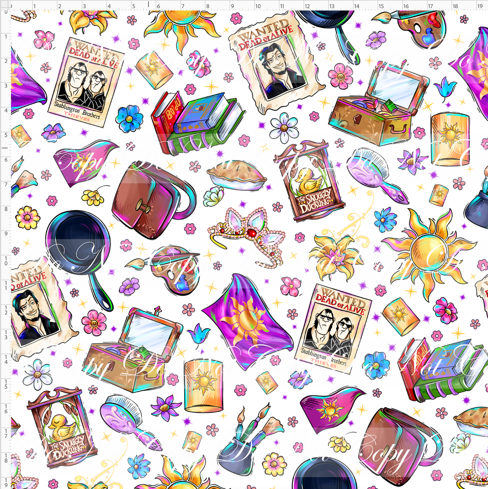 Kid/child panels measure 19" x 34". The image area typically ranges from 7" x 7" to 8" x 8", though some smaller design elements may extend beyond these dimensions. Please refer to the ruler shown on the design to ensure it fits your project needs.