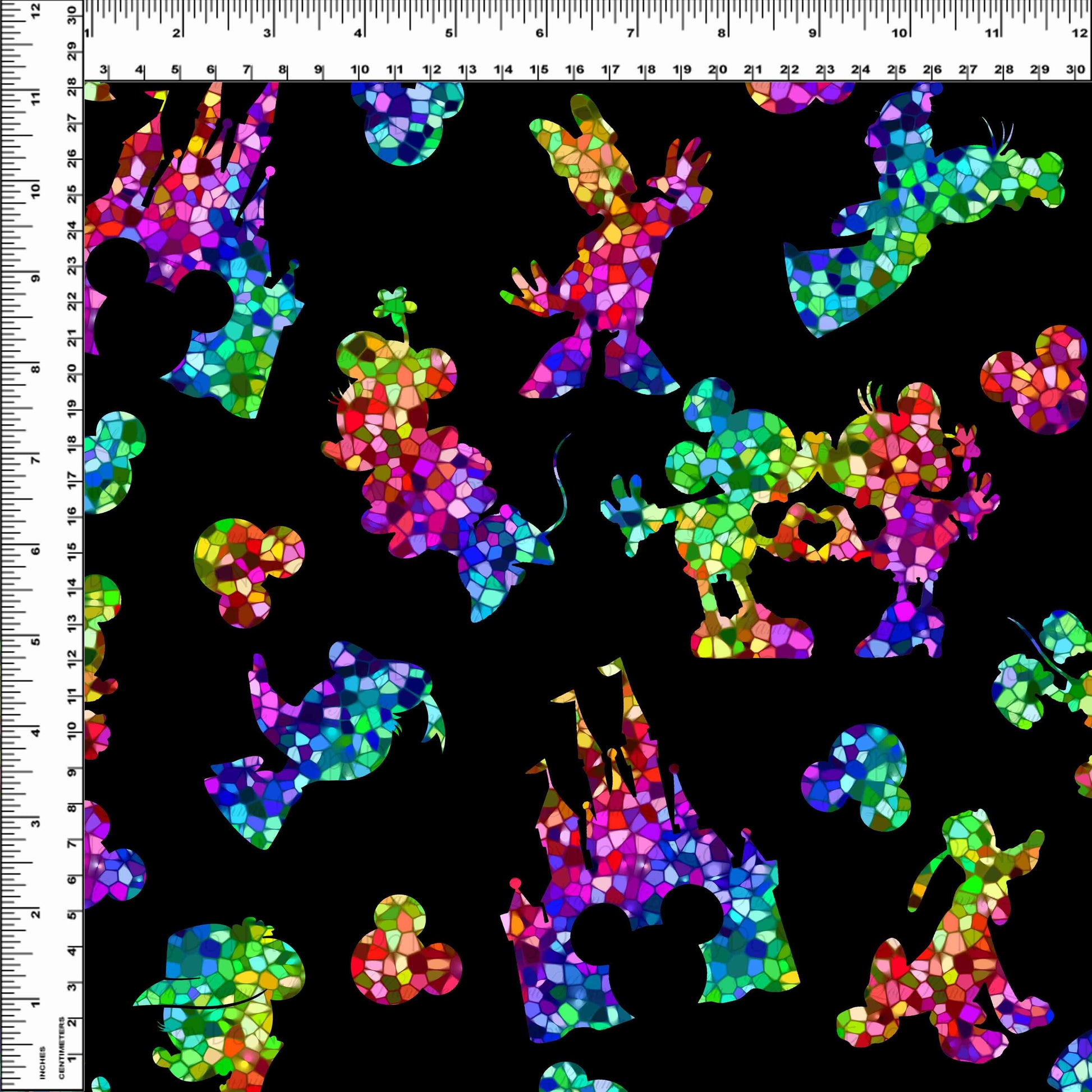 Kid/child panels measure 19" x 34". The image area typically ranges from 7" x 7" to 8" x 8", though some smaller design elements may extend beyond these dimensions. Please refer to the ruler shown on the design to ensure it fits your project needs.