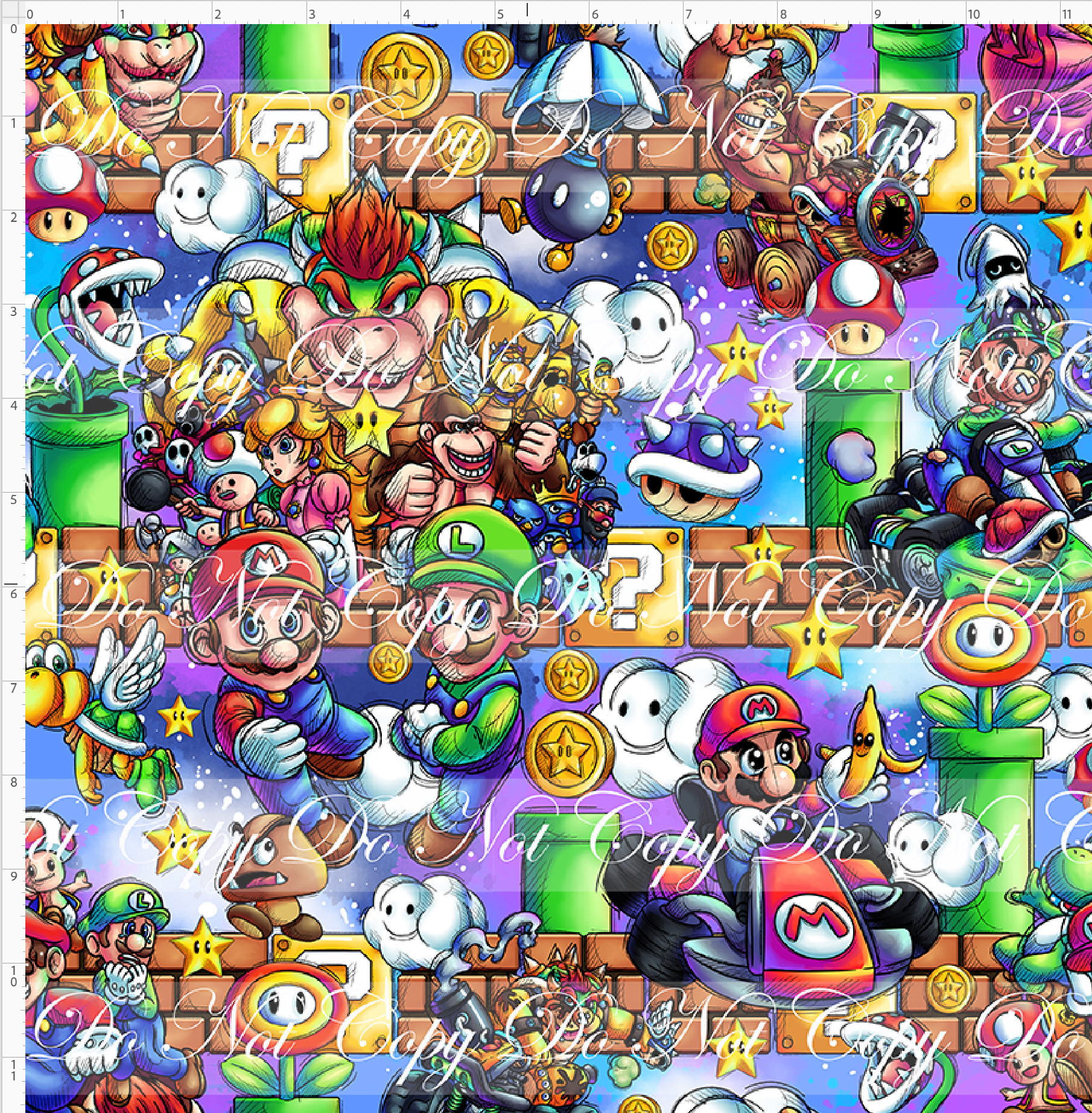 Kid/child panels measure 19" x 34". The image area typically ranges from 7" x 7" to 8" x 8", though some smaller design elements may extend beyond these dimensions. Please refer to the ruler shown on the design to ensure it fits your project needs.